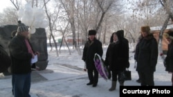 Гражданский активист Берик Жагыпаров пишет в социальной сети Facebook о том, что в Жезказгане на акцию памяти пришли около 30 человек. Они возложили цветы к памятнику и почтили погибших минутой молчания. При этом на улице был 35-градусный мороз с порывами ветра.