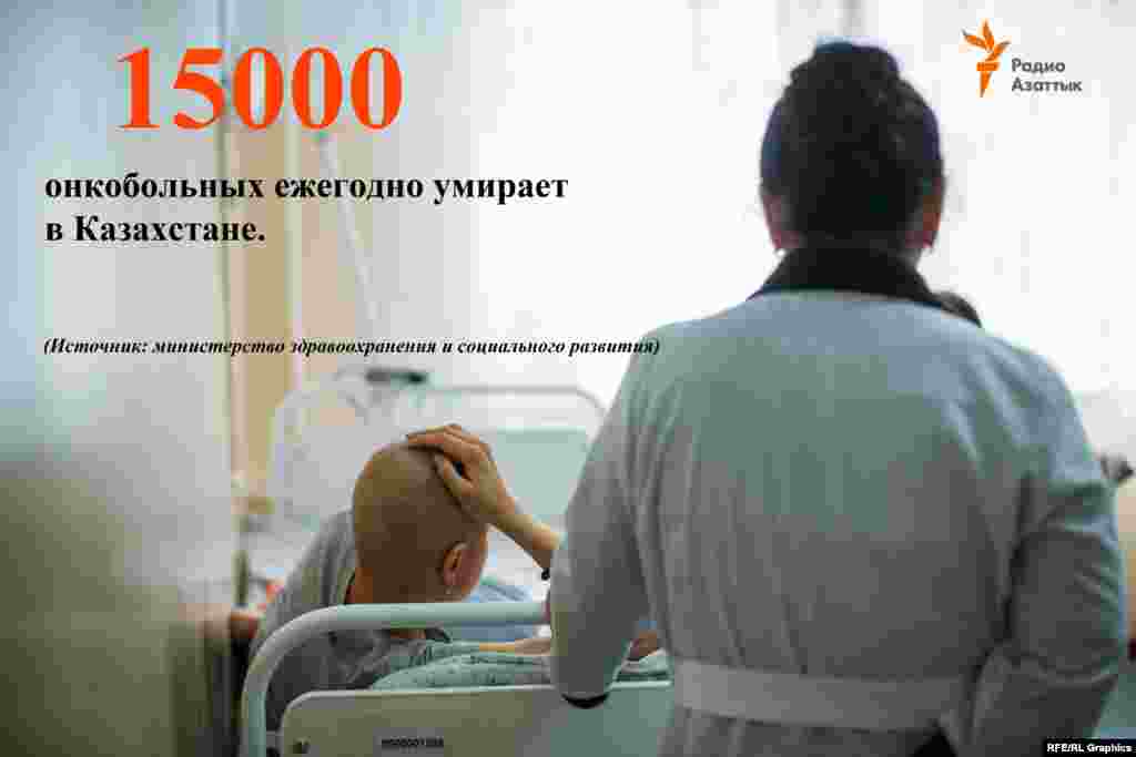 Количество смертей в результате рака за год в Казахстане, число ВИЧ-инфицированных детей в Южно-Казахстанской области и другая иллюстративная статистика.